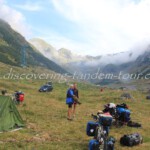 „Trans Fugaras“ die höchste und schönste Passstraße Rumäniens war für mich eines der bisher schönsten Erlebnisse dieser Reise. Auf dem Weg zum Pass, wir hatten noch ca. 50km flache Anfahrt, kauften wir noch auf dem Markt Gemüse, Brot und Käse für den Tag und trafen einen weiteren Radreisenden. Lorenz aus der Schweiz, ihm wurde gekündigt und er ist nun für ein halbes Jahr in Süd-Osteuropa unterwegs, ein netter Kerl. Nun schon zu viert nahmen wir die Passstraße in Angriff. Es ging 25km bergauf von 400hm auf 2050hm, bei 6-7% durchschnittlicher Steigung kämpften wir uns mit 5-6km/h den Berg hinauf. Einen großen Respekt an Sarah, die nicht ganz freiwillig aber sehr entschlossen sich mit hinauf kämpfte. Wir verbrachten zwei Nächte am Berg, mit einer traumhaften Aussicht. Es war genial, wir hatten tolle Gespräche und kochten zusammen. Da wir unsere Vorräte zusammengelegt hatten, gab es sogar Vorspeise, Hauptgang und Nachtisch. Wir campierten wild, was ok war. Wir waren umgeben von vielen Leuten die hier zelteten und grillten, es liefen Schafe, Kühe und sogar kleine Schweine herum. Viele verbringen dort am Berg ihre freien Tage. Traumhafte Kulisse und schöne Passstraße.
