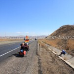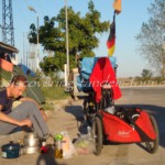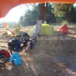 Gegen 14Uhr schaften wir es dann wieder raus aus der Stadt, wo uns noch ein langer beschwerlicher Weg bis „Edirne“ bevorstand. Weitere 60km, ständige Wellen hoch und runter bei um die 40°C in der Sonne. Nach der Hälfte der Strecke hatten wir dann den ersten Platten am Hinterrad. Ausgerechnet das Hinterrad, dem Rad wo wir unser ganzes Gepäck runter nehmen müssen. Wir suchten uns noch ein Schattiges Plätzchen und wechselten dann in einer halben Stunde den Schlauch und beluden das Rad erneut. Gerade als wir alles wieder aufgeladen hatten machte es pfff… und die Luft war wieder raus. Wir übten uns in Geduld feierten erst mal und wechselten erneut den Schlauch (besonders ärgerlich, es war ein Herstellungsfehler, das Ventil hat sich vom Schlauch gelöst). Gut das ich noch einen alten eingesteckt hatte. So ging es dann nach einer Stunde weiter und jetzt wurden die Beine immer schwerer. Erst gegen 19Uhr erreichten wir, nach über 100km, 1200hm und gleißender Sonne, völlig erschöpft Edirne. Zum Glück fanden wir den Zeltplatz direkt auf dem Weg zur Stadt.