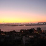 Traumhafte Kulisse weil auf der einen Seite die kleinen Dorfer mit ihren Moscheen sich gut in die karge Hügellandschaft einfügen und auf der anderen Seite die große Stadt Canakale sich ins Hinterland zieht.
